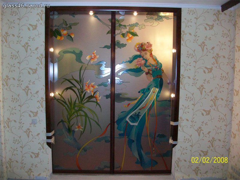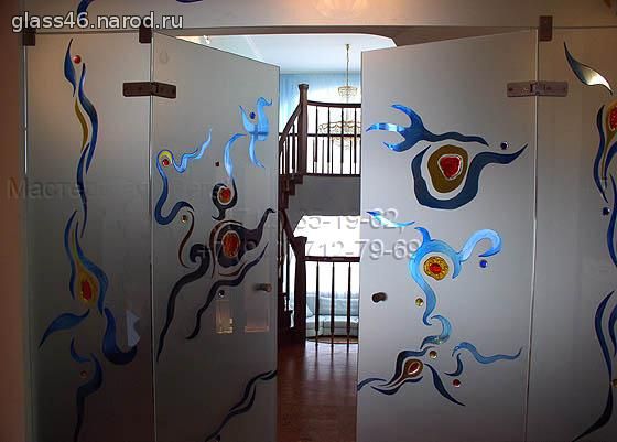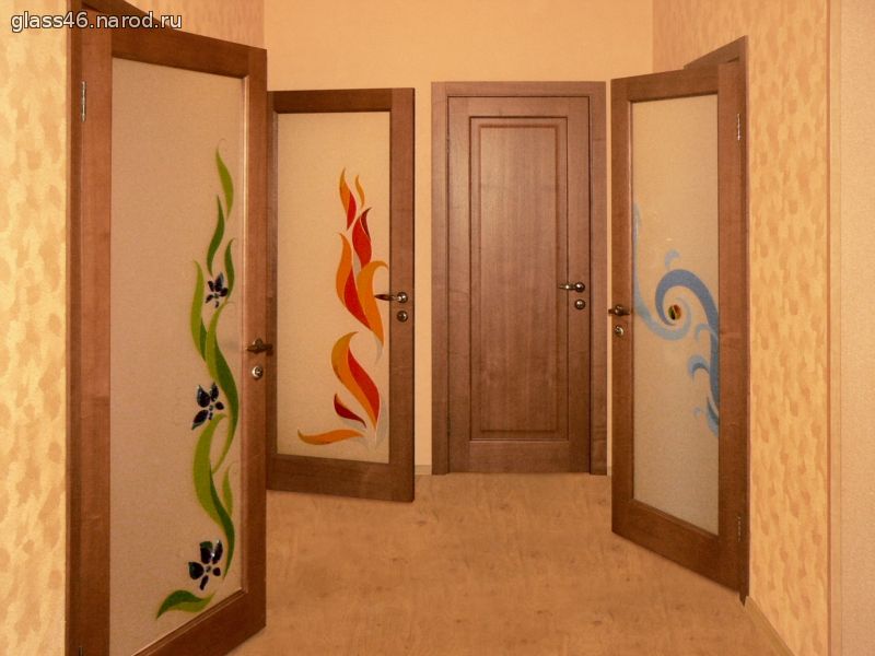 Разнообразие технологий, применяемых в наши дни для обработки стеклянных дверных вставок, значительно расширяет поле творческой деятельности дизайнеров. Гравировка (в том числе, лазерная), пескоструйная обработка, травление, цветная печать и другие методы позволяют сделать интерьер поистине неотразимым. На стеклянные вставки можно нанести любые изображения или орнаменты – от самых простых до сложнейших (например, любимое фото).